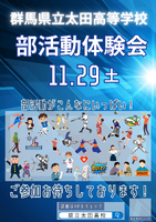 11/29(土)部活動体験会 まもなく(10月末ごろ)募集開始いたします しばらくお待ちください! |